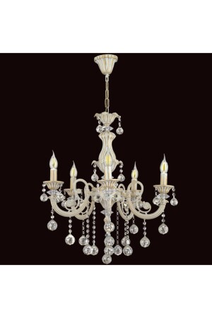 MNZ-Sultan 5 Arm White Gilt Crystal Stone Chandelier GNC-015-05-B