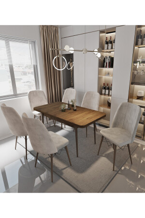 MNZ-Sümela 80x130(غلق) 80x170(فتح) طاولة الطعام المجموعة طاولة المطبخ المجموعة الكريم مع 6 مقاعد TYC00756
