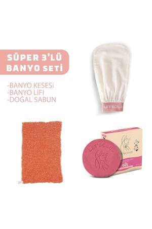MNZ-Super 3 قطع حمام مجموعة Ecru حمام غسيل الغسيل الطبيعي الوردة جوهر الصابون البرتقال حمام لوفا SUPER3LU