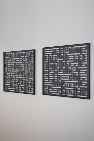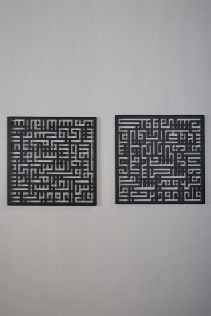 MNZ-Surah Falaq و Nas مجموعة من 2 لوحات معدنية كوفي إسلامية - لوحات جدار دينية - سوداء - Wam085