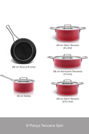 MNZ-كاراكا سويسري كريستال ماسترمايد 9 قطعة طباخات مجموعة الإمبراطورية الأحمر أول في تركيا من كاراكا! مجموعة طباخات جديدة