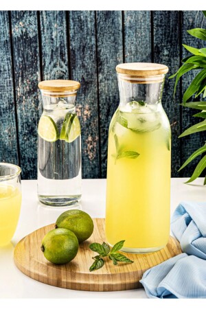 (MNZ-Glass Lid Bottle Jug 2 Set) المياه المعدلة