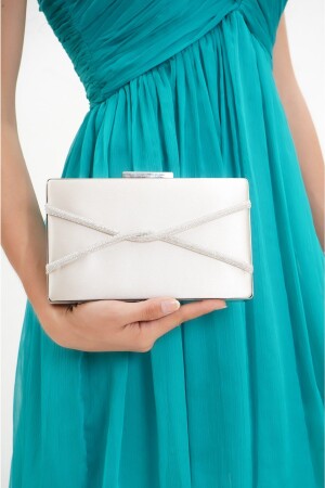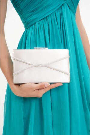 Kadın Yuvarlak Gümüş Taşlı Bilezik Aksesuarlı Abiye Clutch Portföy Çantası