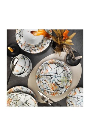 مجموعة من الفورسلين من 24 قطعة من MNZ، 6 أكواب، 6 أطباق عميقة، 6 أطباق خدمة، 6 أطباق كعك