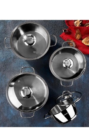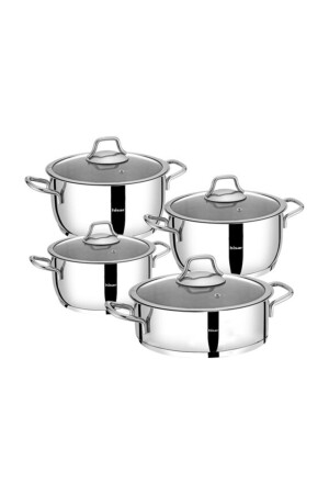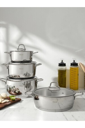 MNZ-Hisar teos 8 قطع مجموعة أدوات الطهي304 فولاذ المقاوم للصدأ 18/10 نيكل الكروم محسّن بعناية السطحات الخارجية الح