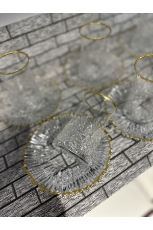 تمتلك MNZ-Paşabahçe timeless 12 قطعة من المجموعة الذهبية، 6 كوبات Paşabahçe timeless و 6 صبغات صحن الشاي القطرية