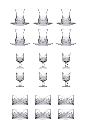 MNZ-Timeless 24 قطعة شاي & خزنة وقدم الزجاج مجموعة US002156