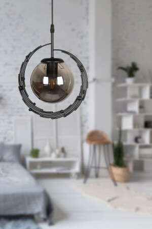 Pare Model Modern Spor Siyah 4'lu Glop Füme Camlı Avize