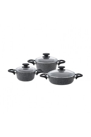 مجموعة من الـ MNZ-Emsan TitanGranite Gray 3-piece Saucepan Set. مجموعة من الـ Granite-looking coating pot، التي تتحمل مقاومة للخدوش، وق