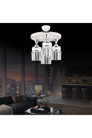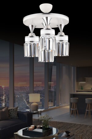 MNZ-Tokyo 4-piece White Plafone، حجر الكريستال، شريط كروم، أسطوانة نحو أسفل وجهة لخيالية شمعة s45453