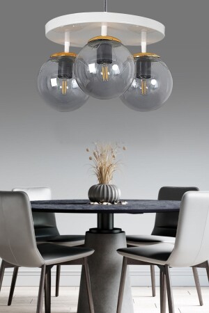 Pare Model Modern Spor Siyah 4'lu Glop Füme Camlı Avize