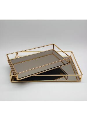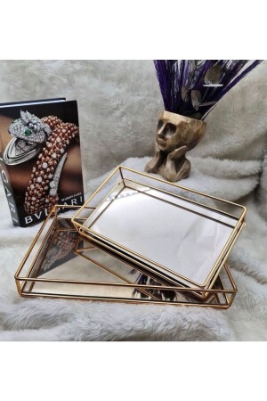 MNZ-Tray مستطيل الذهب مجموعة من 2 كروم تفصيلية مرآة وعد العرض الصفوفة مجموعة الصفوفة