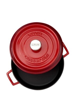 MNZ-Trendy Cast Iron 2 Piece Pot Set 28 سم عميقة مسطحة حمراء حمراء 28bdred
