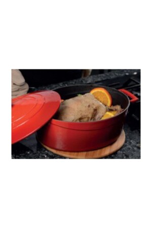 MNZ-Trendy Oval Cast Iron Pot 23x29 سم حمراء LV O TC 29 K2 R