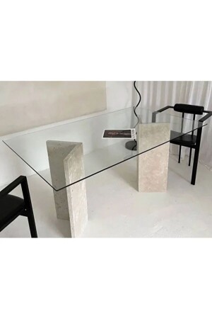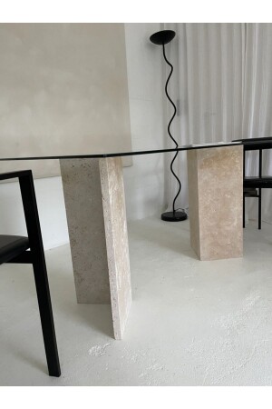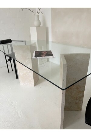 MNZ-Triangel - طاولة تناول الطعام الطبيعية من الترافرتين طاولة تناول الطعام من الزجاج 90*170