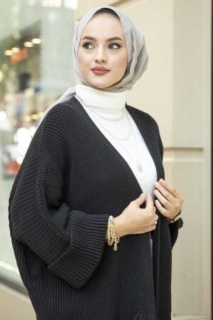 Kadın Siyah Penye Italyan Reglan Oval Etek Uzun Kol Esnek Uzun Hırka & Tesettür Hırka