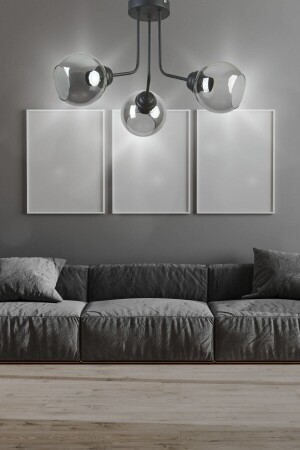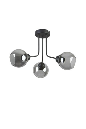 Pare Model Modern Spor Siyah 4'lu Glop Füme Camlı Avize