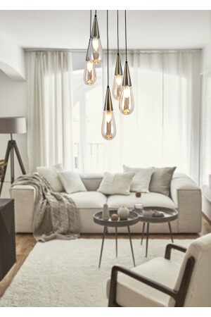 Pare Model Modern Spor Siyah 4'lu Glop Füme Camlı Avize