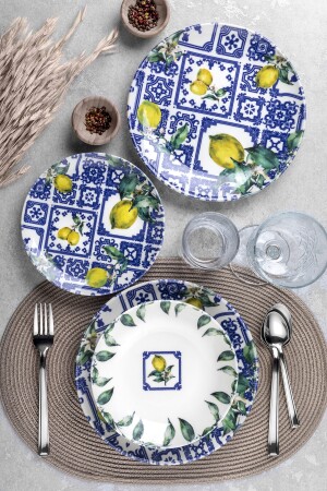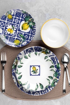 مجموعة العشاء من الفورسلين من طراز MNZ-24 6 قطع = وعاء 14 سم 6 قطع = طبق كعك 19 سم 6 قطع = طبق عميق 19 سم 6 قطع = طبق خدمة 24 سم • الم