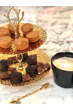 مـنـز - أزياء ذهبية مطليّة 6-قطعة مـاكارون حاملة مقهى جانب خدمة تركيّة ممتعة حاملة لوكس
