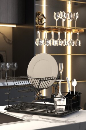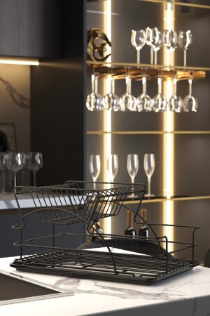 Paslanmaz Alüminyum Iki Katlı Siyah Bulaşıklık Modern Tabaklık