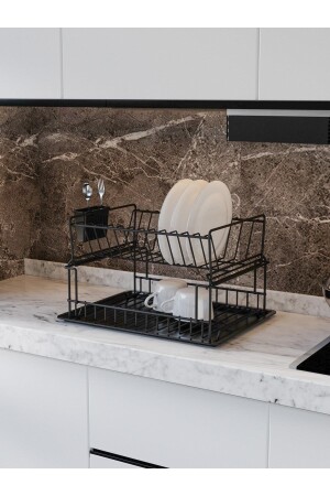 Paslanmaz Alüminyum Iki Katlı Siyah Bulaşıklık Modern Tabaklık