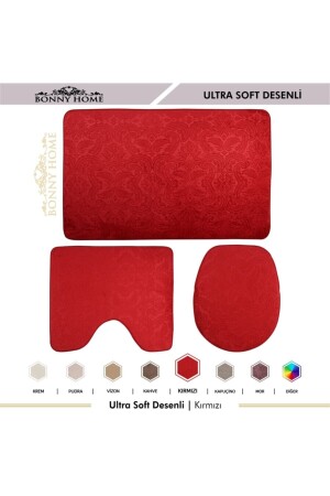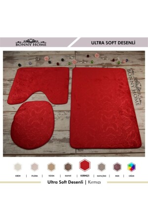 MNZ-Ultrasoft نمط 3 قطع حمراء المرحاض مجموعة حمام السجادة المطبخ مجموعة UltSoft