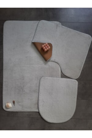 MNZ-Ultrasoft Plain Silver Gray 3-piece Bath Mat Rug Set غير المنزلق على أساس غسيل حوض المياه المتنزه Set BnyUltra