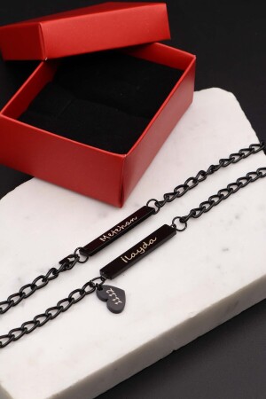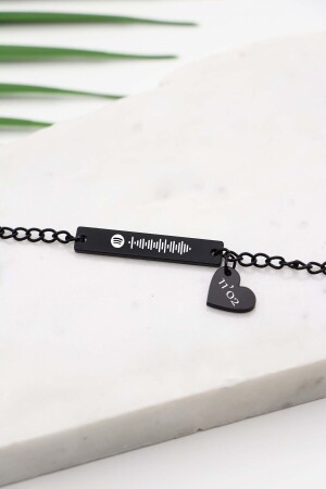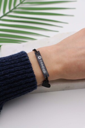 MNZ-Unisex بلون أسود سوار مزدوج مع رمز Spotify & اسم و حبيب سوار 1308trend01