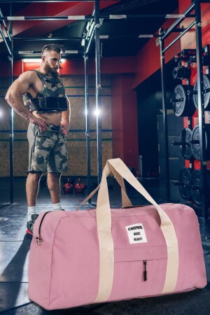 Somon Renk Krinkıl Kumaş 00816 Unisex Önü Cepli Suya Dayanıklı Omuz Askılı El Spor Seyahat Çantası