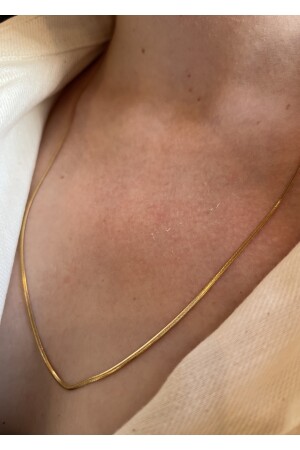 Çelik Kolye Yoncalı Burgu Kolyeli Uzun 65 Cm Gold