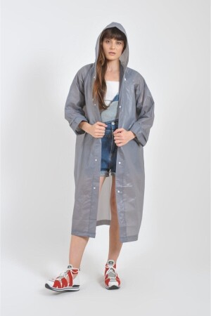 MNZ-Unisex Grey Eva Fabric المياه المقاومة للرياح معطف مطر 00385