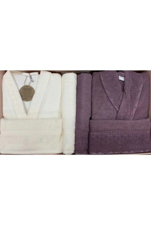 MNZ-Unisex Orchid Cream Plum Family Bathrobe Set PRA-1118616-1729