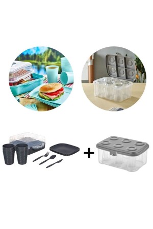 MNZ-Urve 6 أشخاص في التخييمات السفر مجموعة النزهة وكوب الشاي حاوية معدات الحمل 2 في 1 أنتراتيت P4981