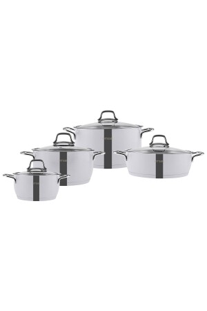 MNZ-Emsan Valeria 8 قطعة حاوية الصلب مجموعة مجموعة مجموعة مجموعة محتويات 16 سم 1-5 ليتينات عالية الحاوية أعلى الأبعاد 8-5 سم 20 سم 2-4 ل