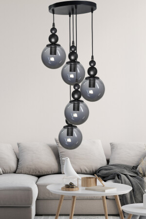 MNZ-Venus 5-piece Pendant Lamp Black Model - زجاج دخان حقيقي - غرفة المعيشة - القاعة - غرفة النوم الشنادل الحديث V5