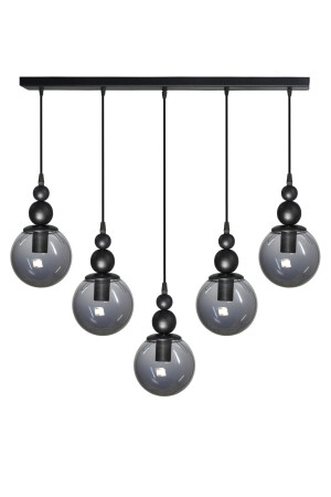 Pare Model Modern Spor Siyah 4'lu Glop Füme Camlı Avize