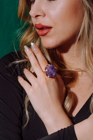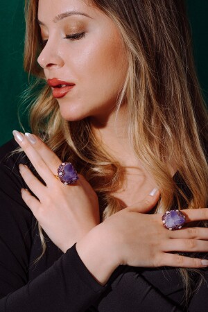 م.ن.ز-اميثست Stone Baroque Style Zircon Stone Pearl Luxury Design Ring Gold Plated المنتج مصنوع يدوياً. يتم استخدام مواد من الفولاذ 316L. هو مطلي بال