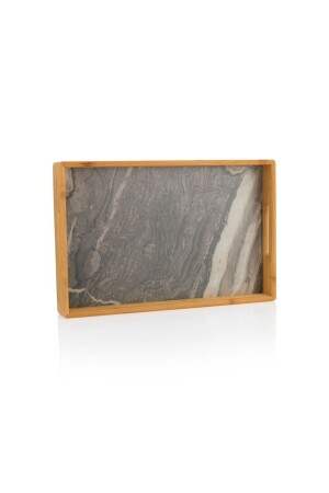 3 Lü (51- 37- 30 CM) Ahşap Kulplu Metal Tepsi Çay Tepsisi Kahve Tepsisi Sunum Tepsi Seti