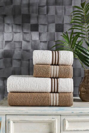 م.ن.ز-تتتكون مجموعةنا من 4 مناشف. أحجام المناشف هي: 2 قطع من 70x140 سم و 2 قطع من 50x90 سم. تم تنسيقها من