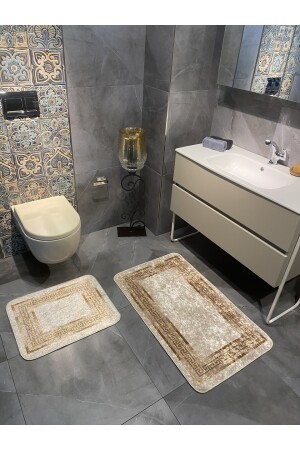 MNZ-Versace نمط 2 قطع غير المنزلق حمام المرحاض مجموعة (60x100 - 60x50) بيج ذهب BYD-CLORISAMAT
