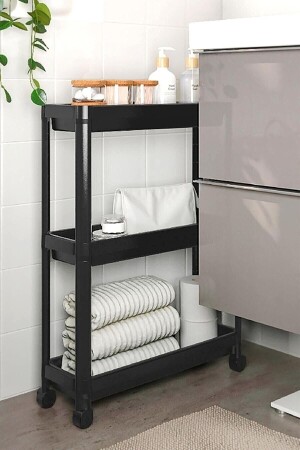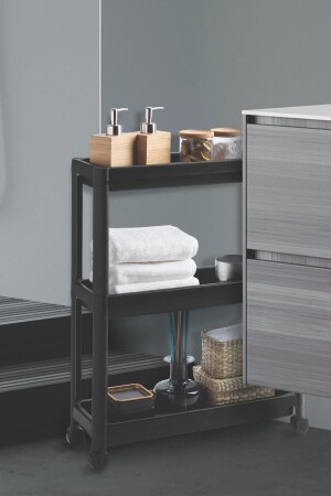 إن إنز-فيسكن متعدد الأغراض الأسود 3 طبقات مستطيلة البلاستيكية غرف الاستحمام مع العجلات سوف تبقي منزلك منظما. لا تنسى التحق