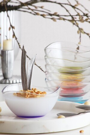Paşabahçe 6'lı Magnolya Bardağı Kavanozu Magnolia Puding Renkli Kapaklı Tatlı Cup Kase Seti