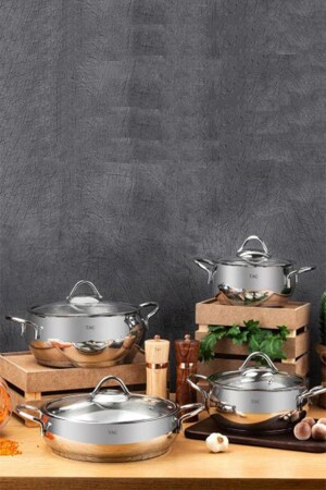 مجموعة طباخ فولاذية من 4 قطع من طراز MNZ-Taç Vitali 4 Piece Steel Cookware Set TAC - 3453 ميزات المنتج مجموعة طباخ فولاذية