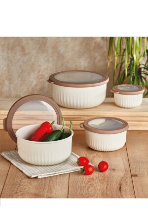 Krem Yuvarlak Kapaklı Kase 7'li K2014