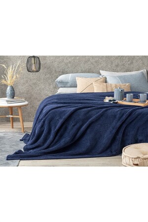 MNZ-Wellsoft بطانية تلفزيون بطانية بلوش بطانية الفولس مزدوجة 220 × 230 - البحرية الأزرق