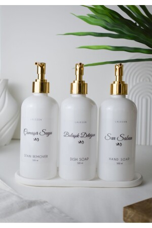 Mermer Desenli Lüks Porselen Mutfak Sıvı Sabunluk Bulaşık Deterjanlık