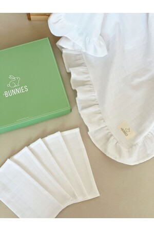 MNZ-White Ruffled Multi-Purpose Muslin Cloth & Handsquape Set JR1910BYZSET