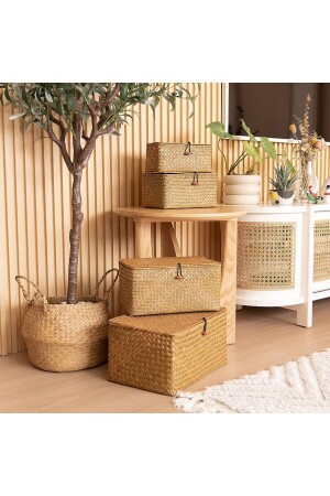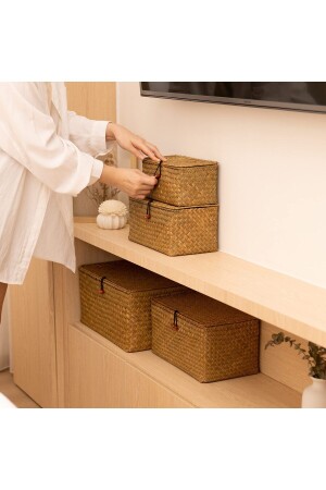 Rattan Dikdörtgen 3'lü Hasır Banyo Organizer Patates&Soğanlık Sepet