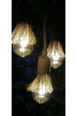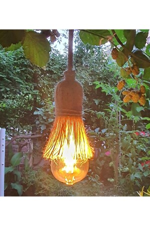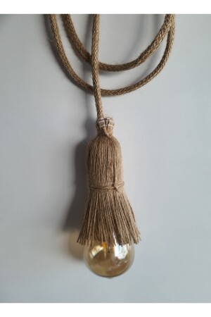 MNZ-Wicker Jute Rope Pendant Lamp Rope واحد الشنابل الكابل مصباح حامل مصباح اللوم (6W EDİSON BULB INCLUDED) TYCLL6ALD